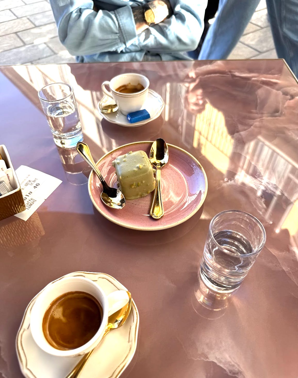 We recently moved to Milan, Italy where we are lucky to have fantastic coffee at home and when we’re out. Here’s a pic of our afternoon coffee at one of our favorite spots.